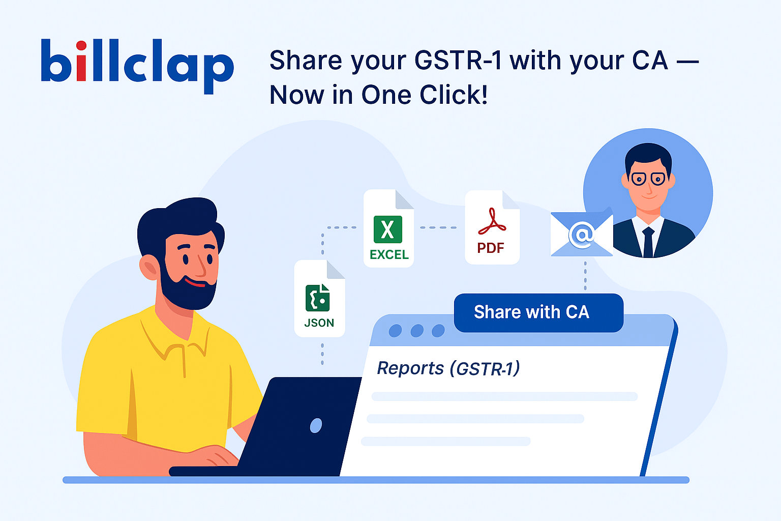 👉 Visit BillClap.com → Reports → GSTR-1 → Share with CA